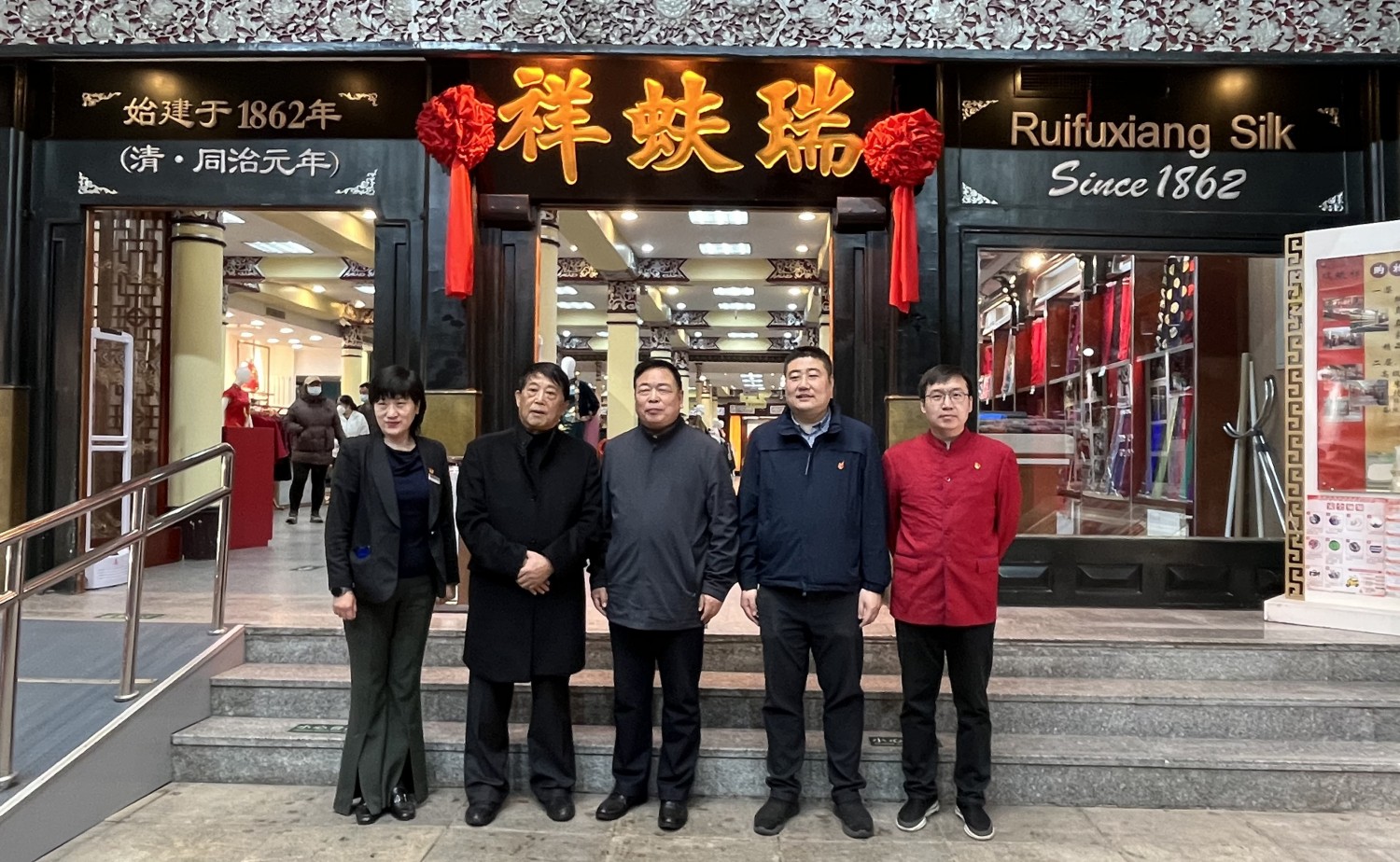 4月4日,西城区大栅栏街道工委书记魏九红、工委副书记、办事处主任苏继洋到老字号企业北京瑞蚨祥绸布店有限责任公司进行走访调研,了解企业需求、听取意见建议。公司董事长薛国强、公司总经理夏岚及公司党支部书记周云璋陪同调研。