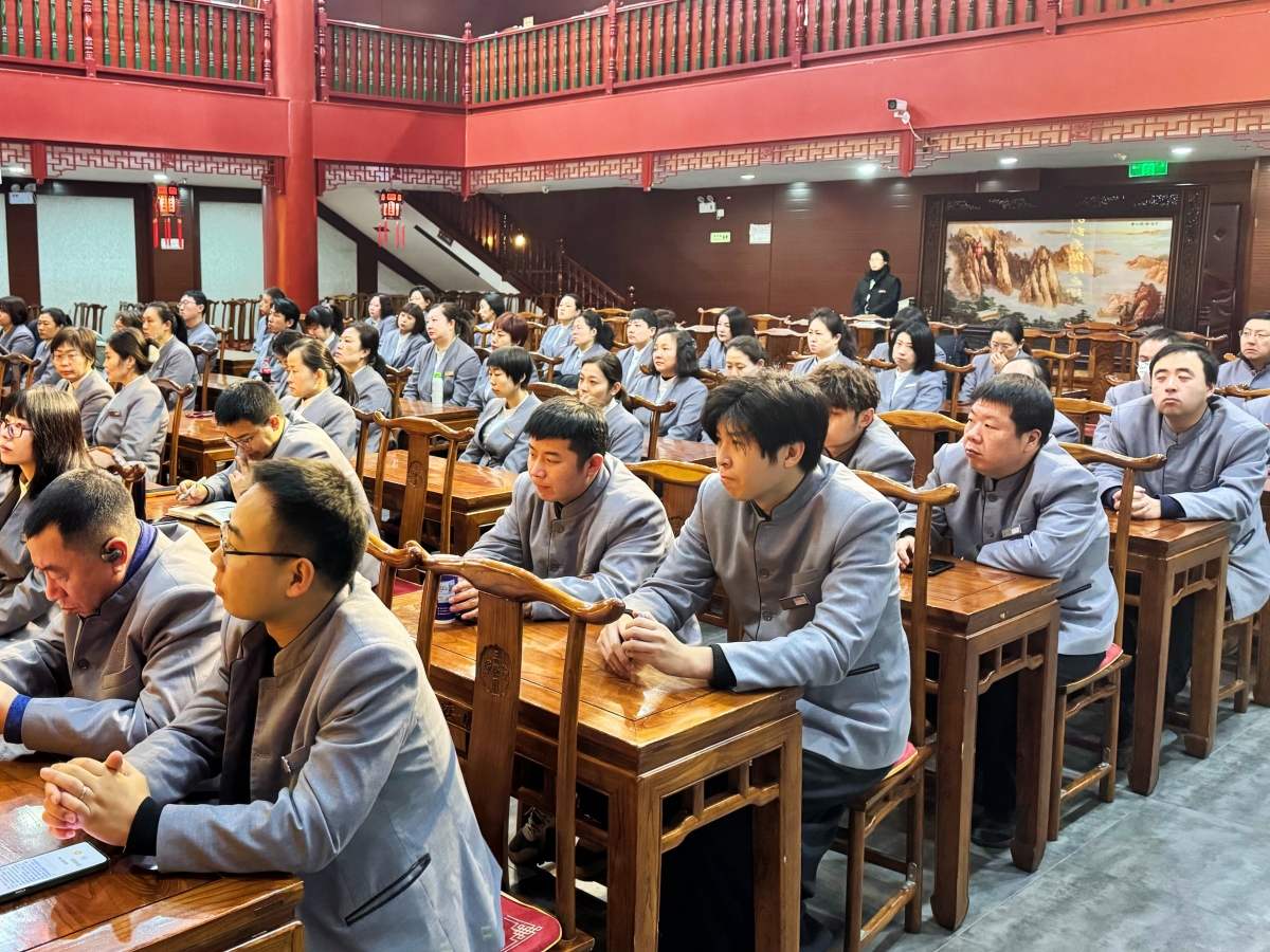 2026年2月9日,北京瑞蚨祥绸布店有限责任公司2025年度工作总结表彰大会圆满举行。公司全体干部职工与上级单位金座公司党政工团领导班子齐聚一堂,共同回顾硕果累累的2025年,擘画充满希望的2026年新蓝图。大会现场,全体员工身着崭新的统一工装,精神饱满,意气风发,展现出瑞蚨祥人昂扬向上的崭新风貌。