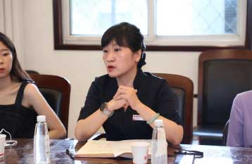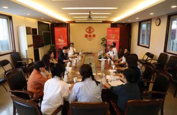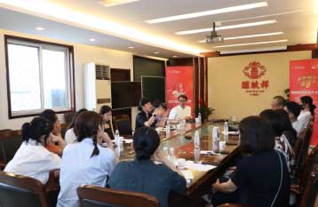 瑞蚨祥副总经理夏岚女士在座谈会上,介绍了瑞蚨祥的品牌特色,设计诉求,品牌宣传要点;并对指导教师、学生提问,进行了答疑。