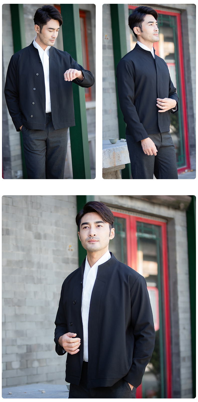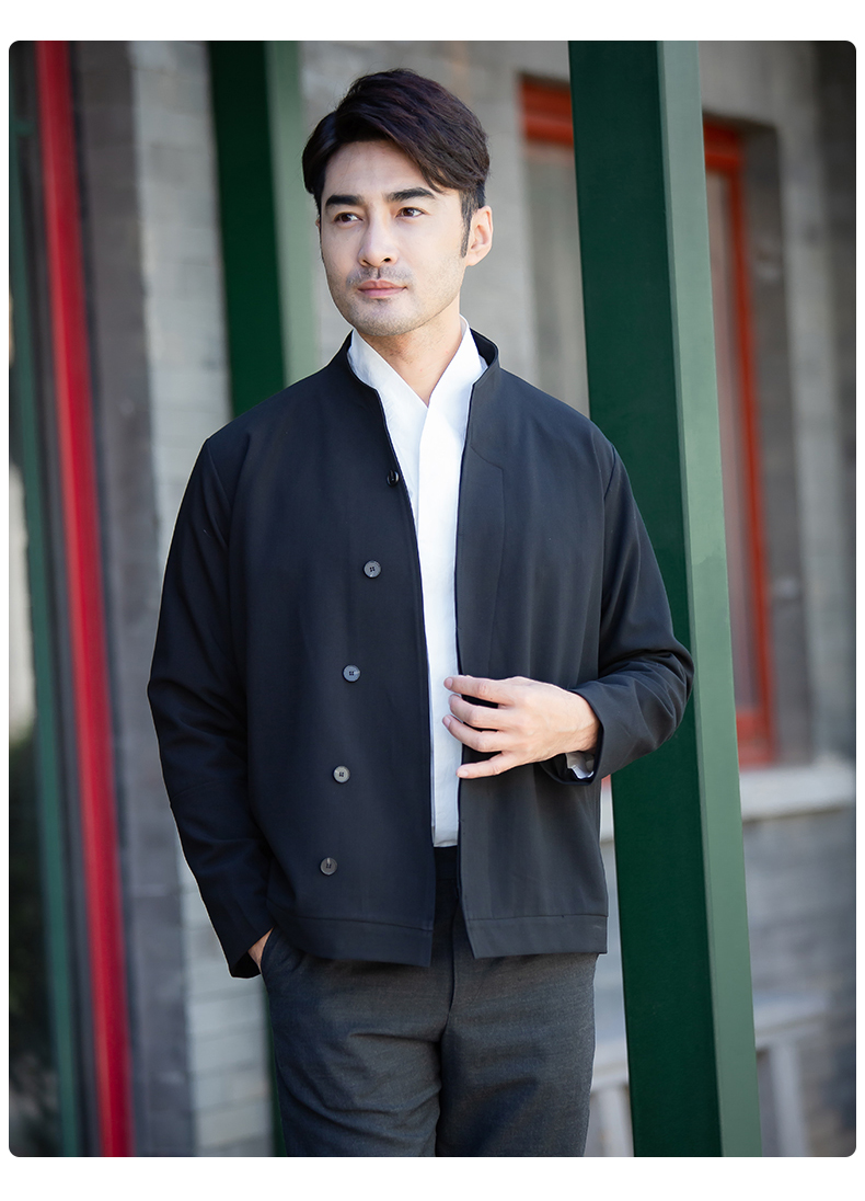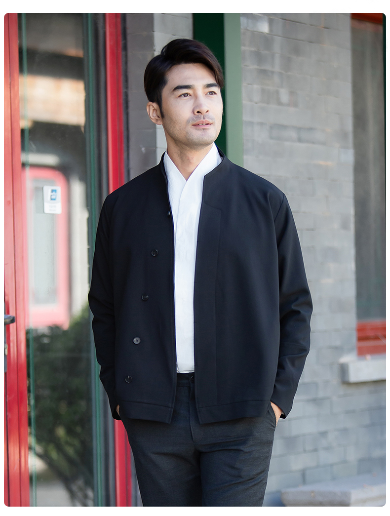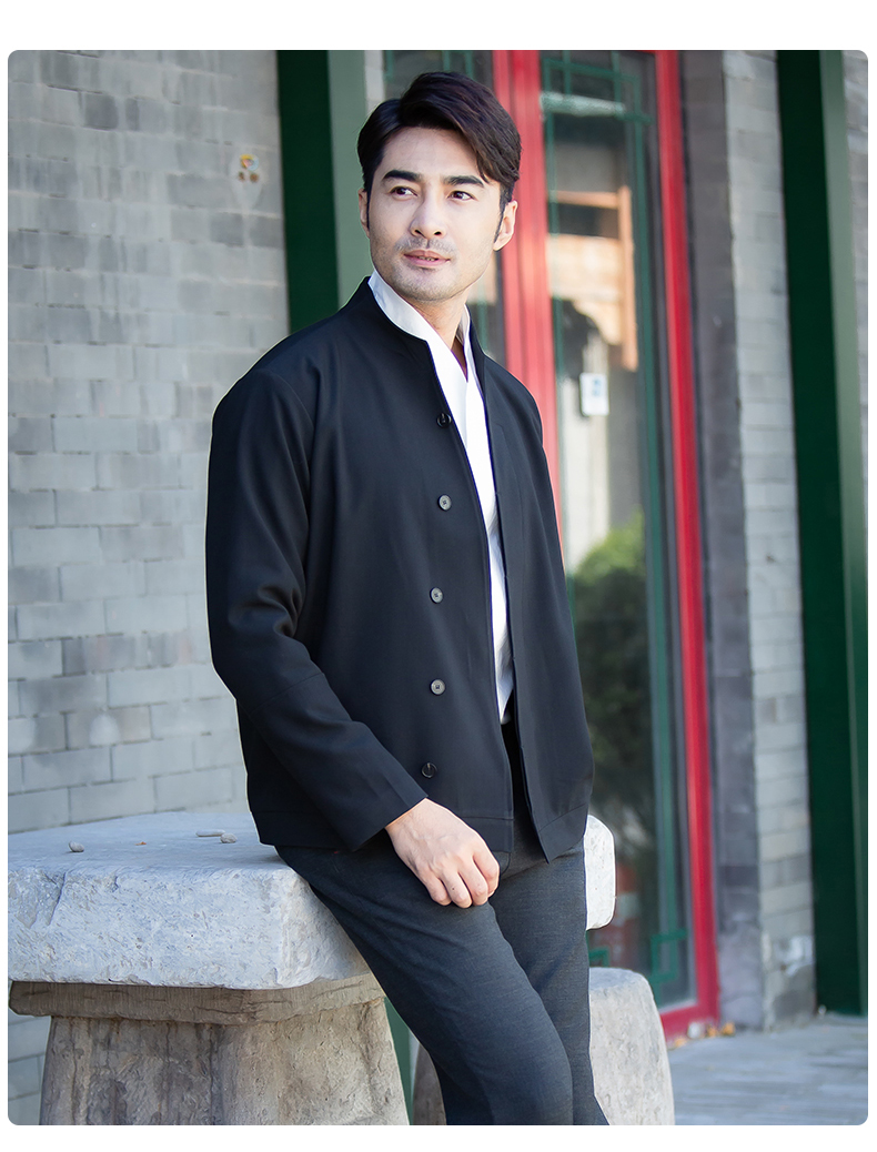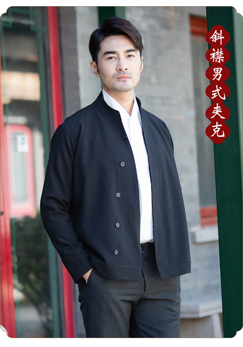 商务休闲男士夹克 时尚斜襟立领上衣外套
