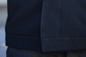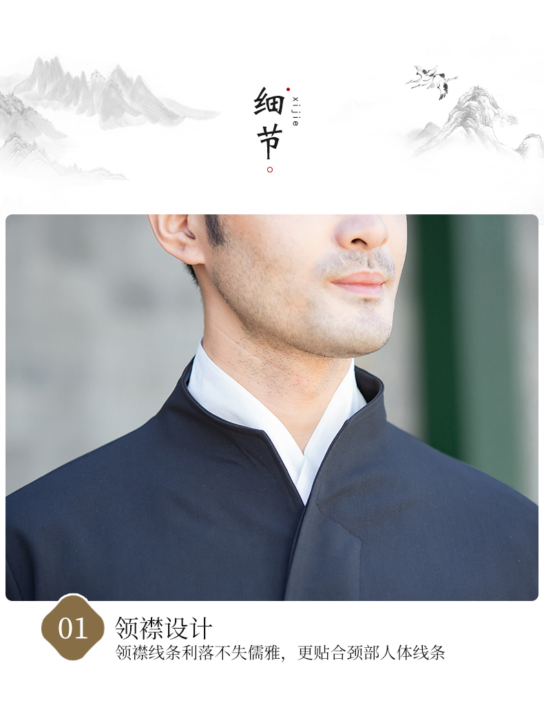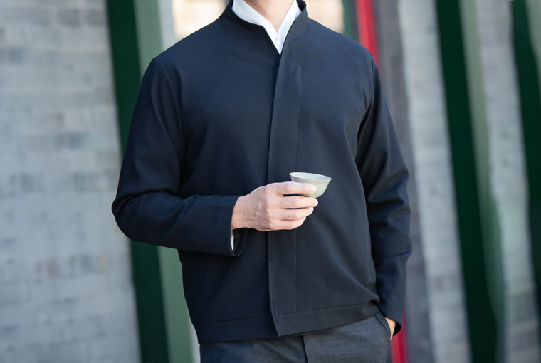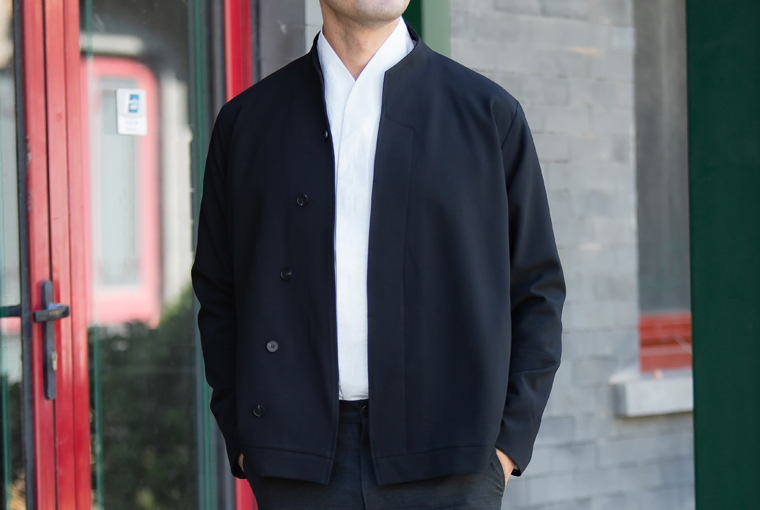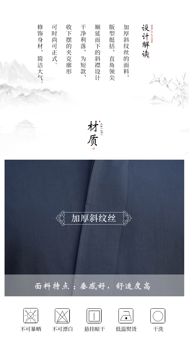 加厚斜纹绸的面料,版型挺括,直角领尖顺延而下的斜襟设计干净利落,为短款、收下摆的夹克廓形,可时尚可正式。修饰身材,简洁大气。