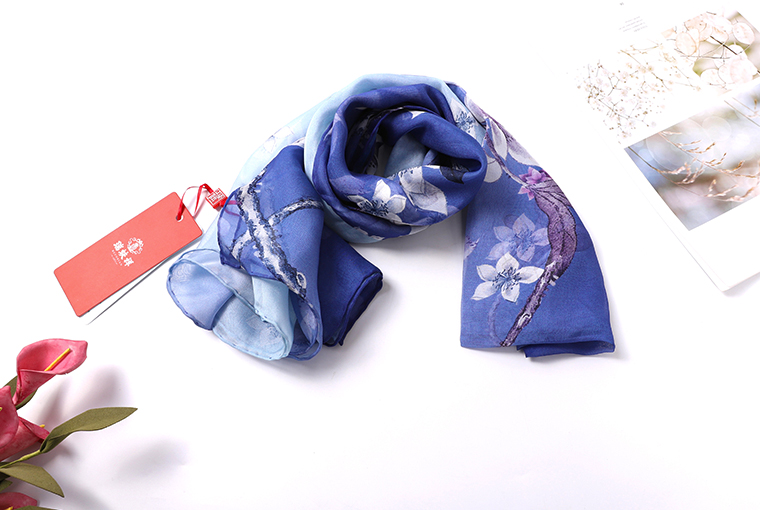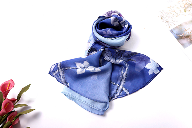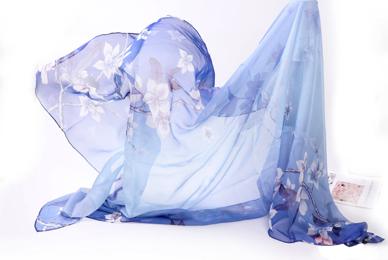 长款超大印花真丝雪纺巾