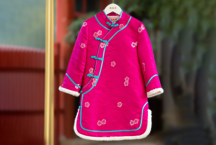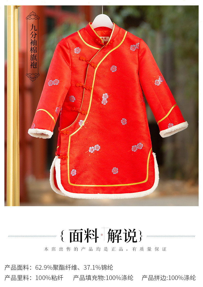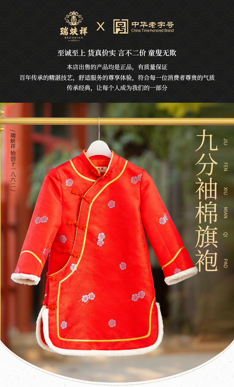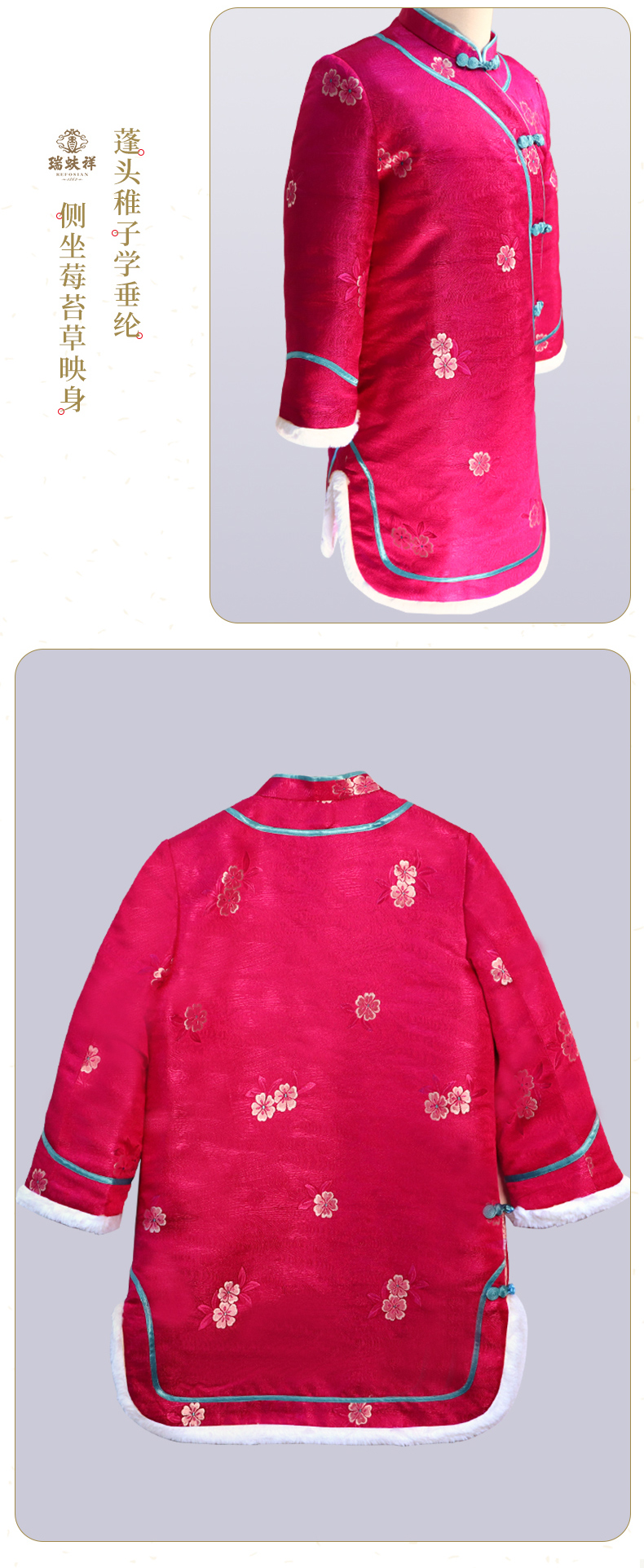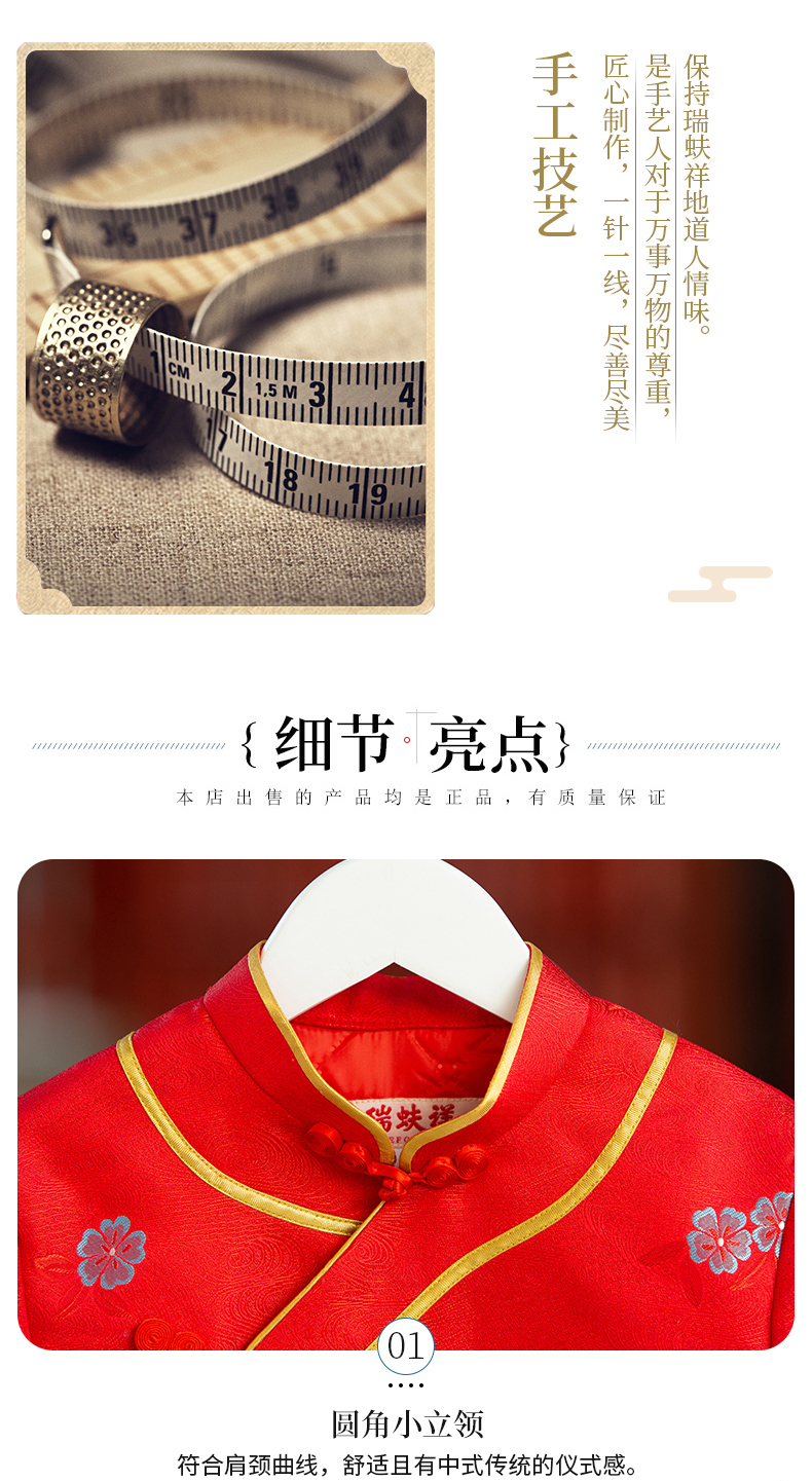 瑞蚨祥女童唐装纯手工盘扣绣花棉旗袍