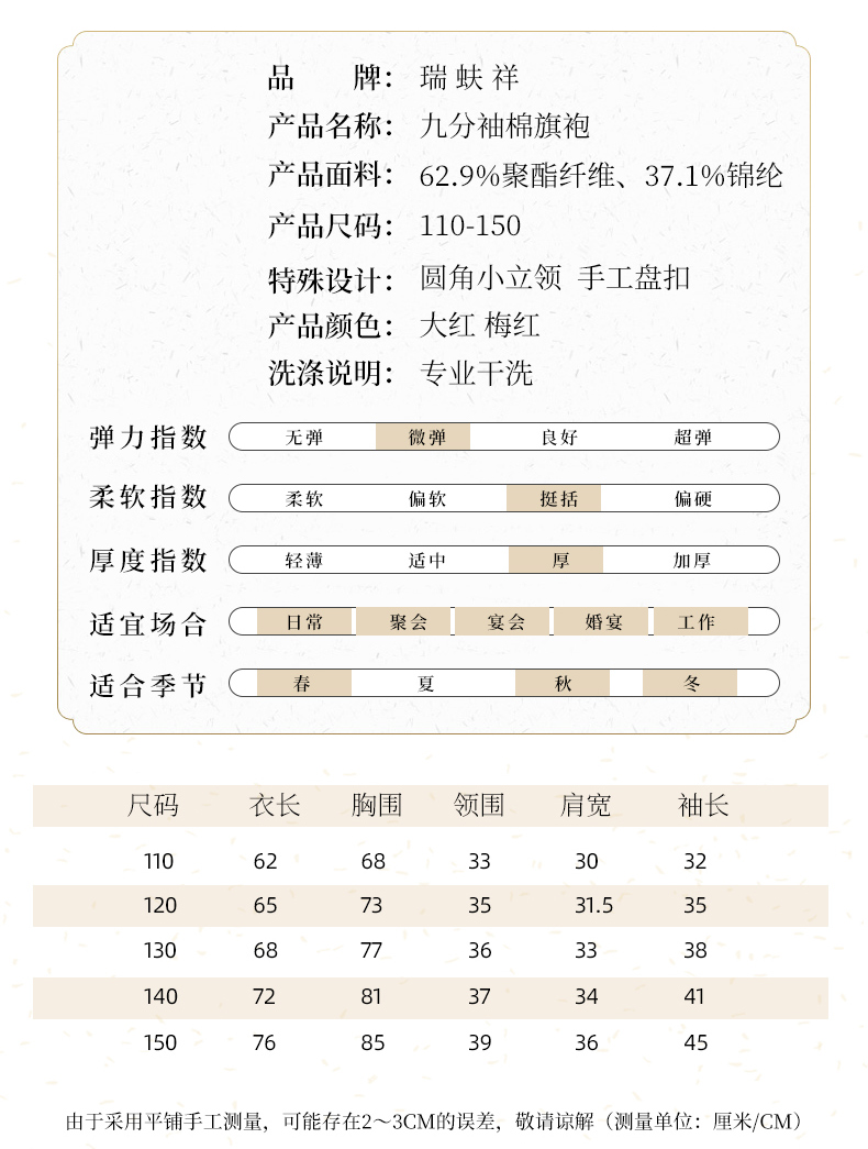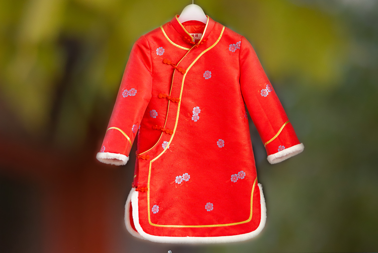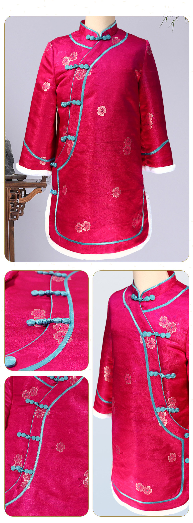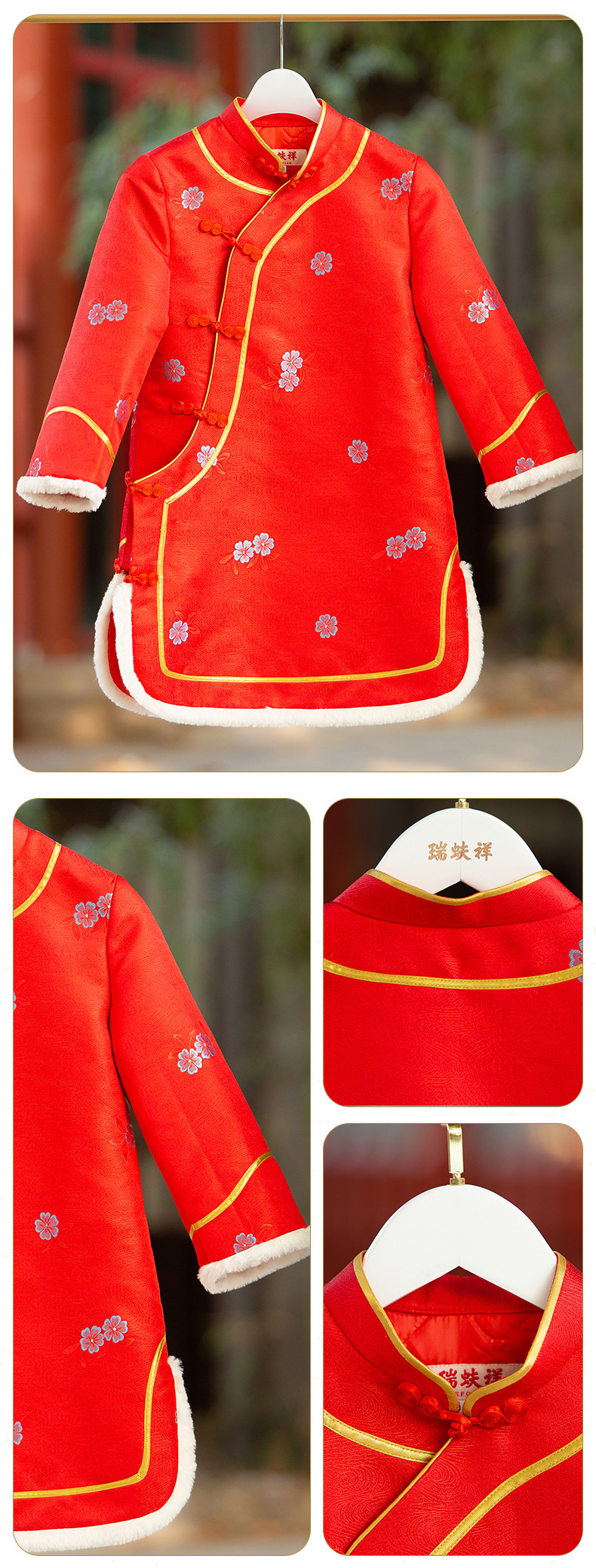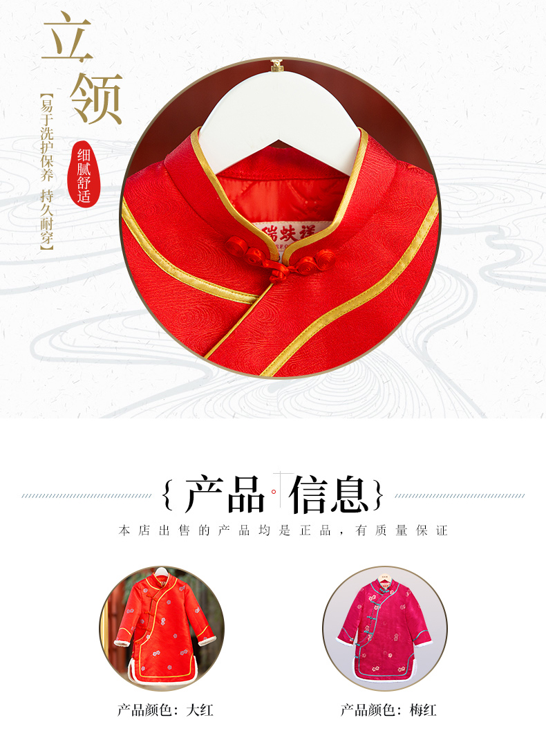 瑞蚨祥女童唐装纯手工盘扣绣花棉旗袍